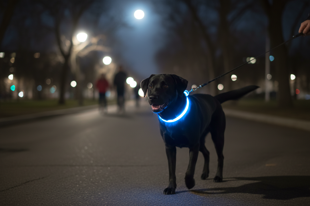 LED collars and lights significantly improve visibility and safety during early morning or evening walks, especially near roads.They help drivers, cyclists, and other pedestrians see your pet from up to 500m away.Rechargeable options are eco-friendly and cost-effective.We recommend them for any low-light walking conditions.